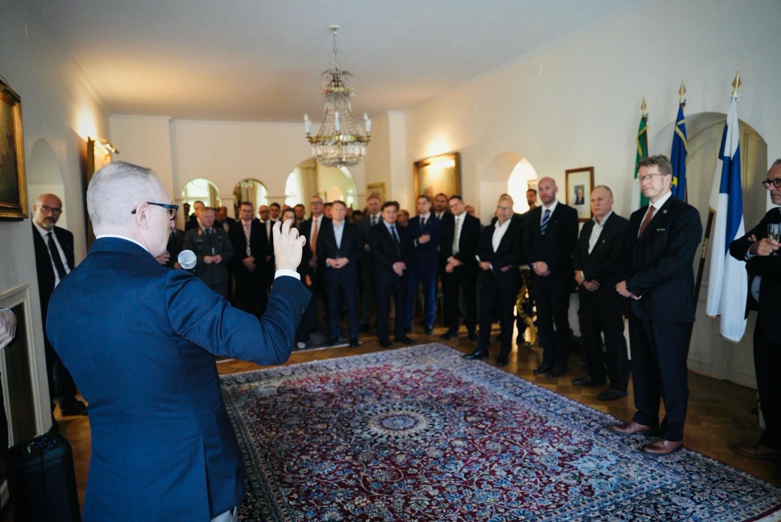 Al ricevimento hanno preso parte rappresentanti del mondo politico e istituzionale, alti gradi della difesa finlandese, esponenti dei media locali, oltre a personalità di primari gruppi industriali dei due Paesi e a una rappresentanza dell’associazione rappresentativa delle aziende del settore difesa e spazio della Finlandia. Per Leonardo erano presenti i Co-General Manager, Simone Ungaro e Carlo Gualdaroni, e il Managing Director della Divisione Cyber, Andrea Campora, mentre per SSH ha partecipato il CEO Rami Raulas, accompagnato dal management dell’azienda e dal fondatore e ideatore del protocollo di sicurezza SSH, Tatu Ylönen.