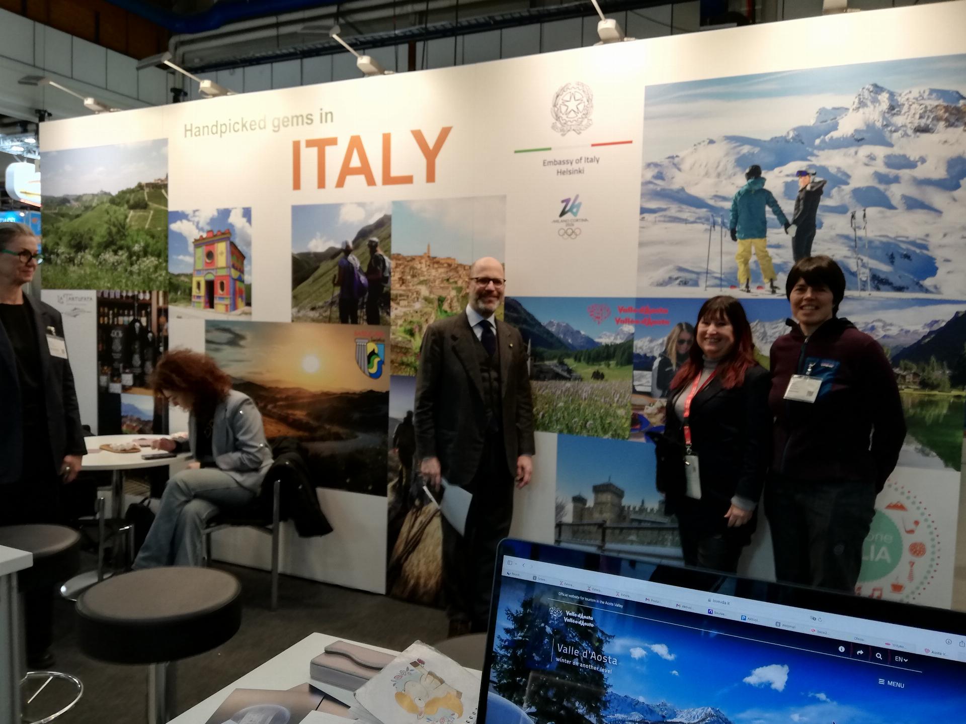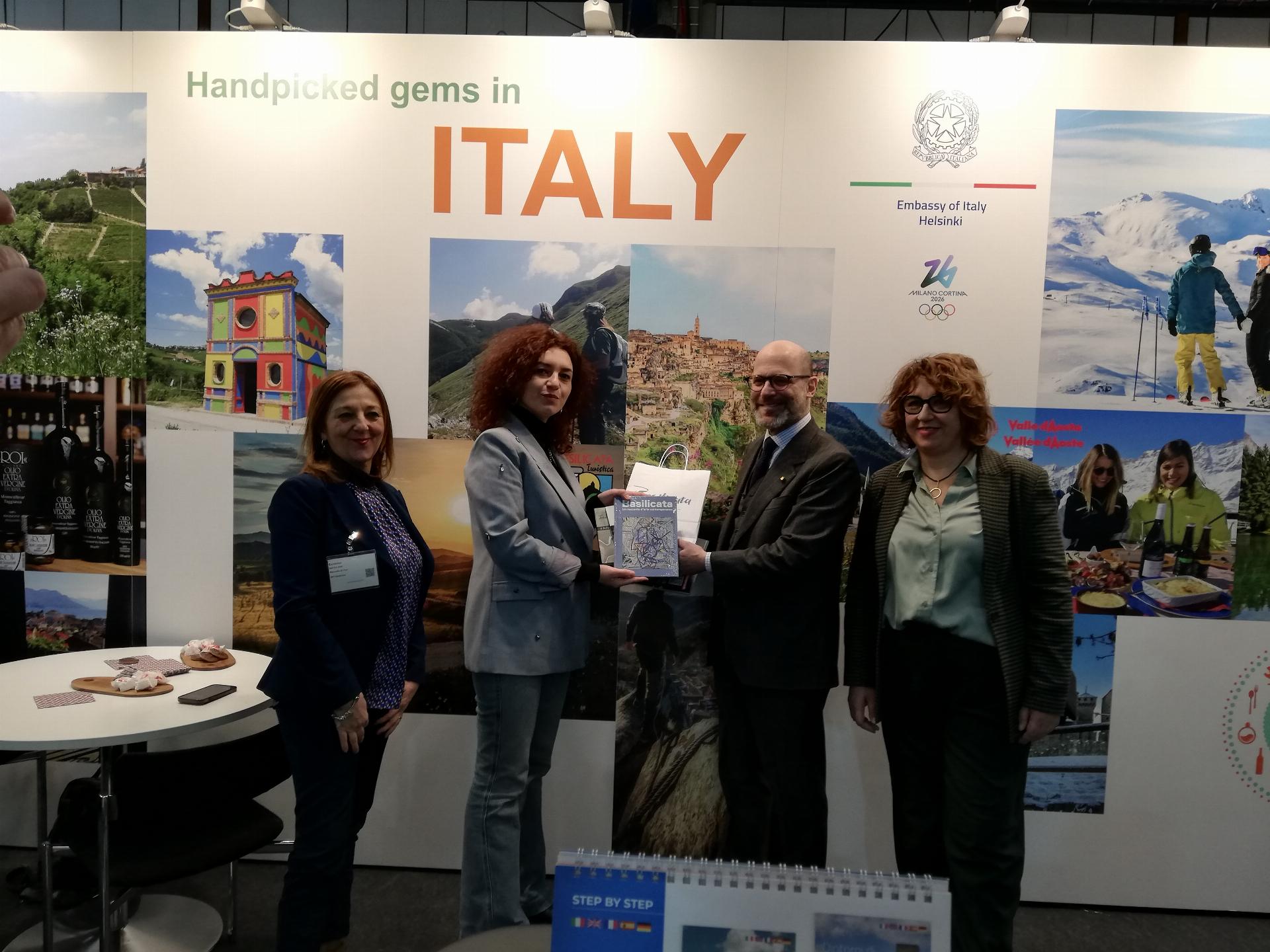 L’Italia e’ nuovamente presente a Matka con uno stand istituzionale che e’ stato inaugurato nella giornata odierna dall’Ambasciatore d’Italia in Finlandia, Nicola Todaro Marescotti. Partecipano al padiglione italiano, promosso dall’Ambasciata con Italian Trade Connections quale partner tecnico, sotto lo slogan ‘Handpicked Gems of Italy’, enti territoriali come la Regione Basilicata e la Regione Valle d’Aosta ed espositori del settore privato.